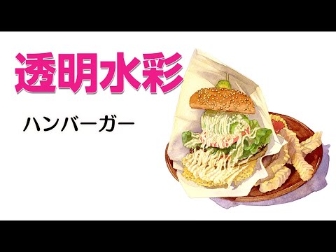 Watercolor Food_24【透明水彩で描く食べ物】ハンバーガー #メイキング #水彩 #食べ物 #沖縄 #イラスト